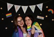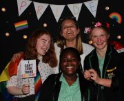 In support of PRIDE and to raise awareness amongst students, we organised a rainbow photo booth with an array of pride-related props and flags for all to come, share their pride and take a nice picture whilst listening to a collaborative playlist of students' favourite LGBT+ artists. A pride flag was flown and we sold rainbow bands and rainbow lollies to symbolise solidarity