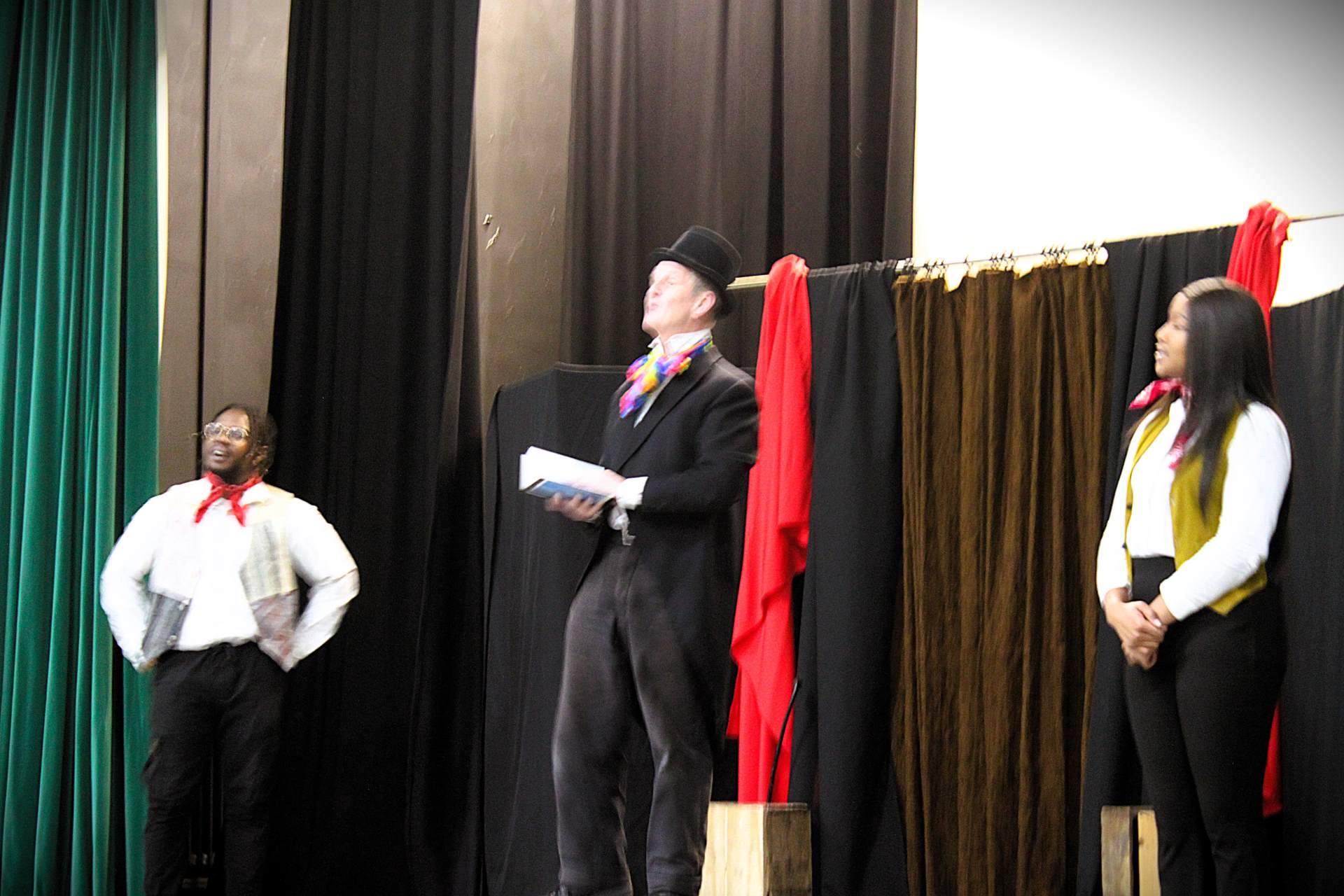 On Tuesday, a performance of 'A Christmas Carol' by Charles Dickens took place, with four actors playing different characters from the story. The actress portraying Scrooge was particularly impressive, with great acting and an excellent use of her voice. The other actors also did a great job bringing the key characters to life. The performance was enjoyable, especially since it connected with the story we read in English. I really enjoyed the performance and the mix of humour and emotion helped me better understand the characters and themes, particularly as a visual learner.